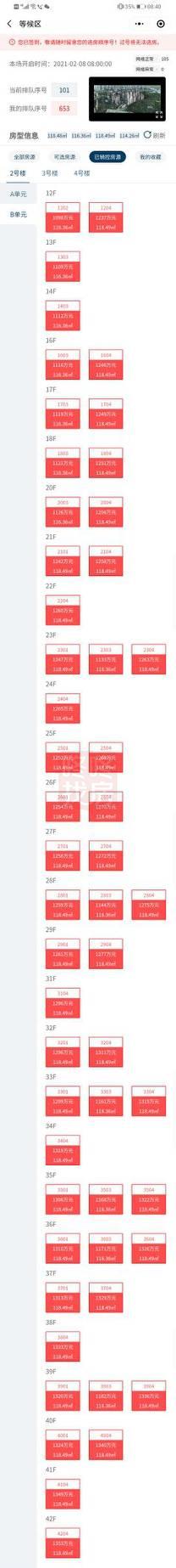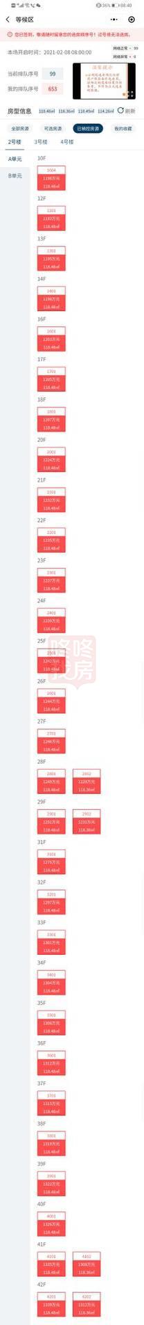 8:41分:目前已经轮到到100号左右选房,较新销控显示,首先被选的房基本都是2栋的。