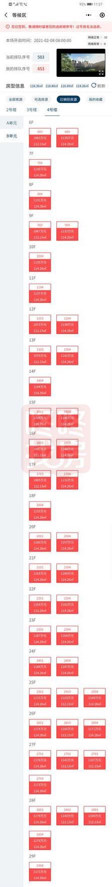 11:46分:目前较新销控显示,已经选房到501号,成交了462套左右,选房还在继续中...