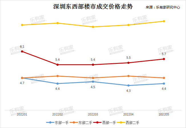 因政府统计方式不同,西部二手住宅过户量中包含了龙华区成交。但即使加上龙华,西部还是不如东部。二手房市场上东部略胜一筹,每个月都能比西部多20%~40%左右。