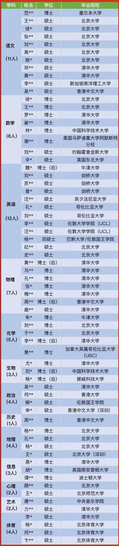 从近几年深中公布的新入职教师名单来看,老师的学历实力也是非常惊人。一半以上来自清华、北大,还毕业于牛津、剑桥、南洋理工、宾夕法尼亚大学等世界名校的,基本都是硕士以上学历,甚至还有牛津大学的博士(后)。