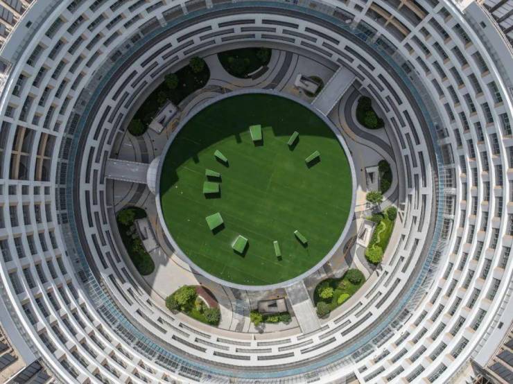 “枢纽之庭”位于整个建筑体的中央,串联门诊医技核心区,公众通过主入口进入这里,接受门诊治疗和医技检查。北塔“生命之庭”通过露天庭院及光导技术引入自然光,创造出极具疗愈感的建筑空间。南塔“交流之庭”布置圆形学术交流厅,聚焦科研教学,旨在促进医学合作和知识分享,为医疗科研和教学提供开放和温馨的环境。