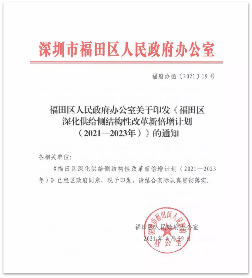 近日,福田区立足新发展阶段、贯彻新发展理念、构建新发展格局,以深化供给侧结构性改革为主线,抢抓产业转型升级机遇,重磅推出《福田区深化供给侧结构性改革新倍增计划(2021—2023年)》。