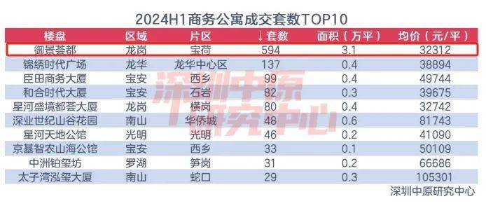 打骨折卖房,还是有成效的。据深圳中原发布的数据显示,今年上半年京基御景荟都成交了594套公寓,在公寓产品中成交最多。