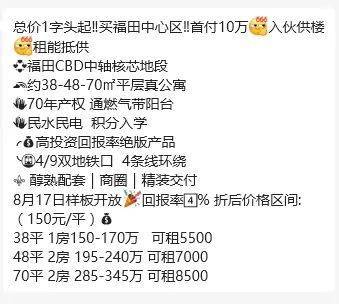 周一一早,就刷到了中介朋友群发的消息,福田某个公寓新盘,周末开盘热销200多批。