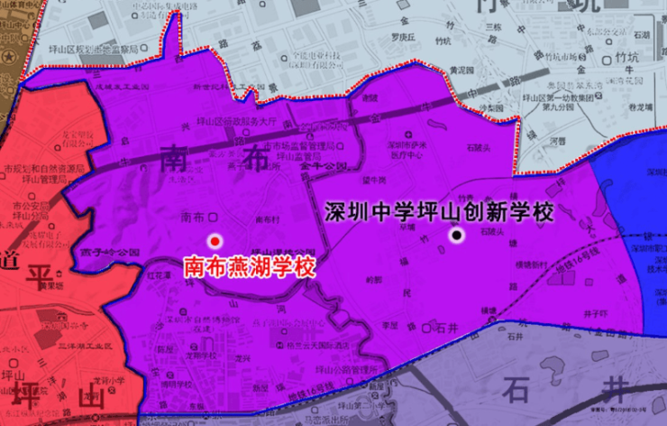 南布燕湖学校(小学部)与深圳中学坪山创新学校(小学部)组成大学区。