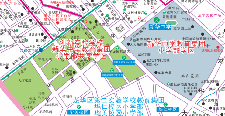 以上学校学区地图边界可能会因工作站、居委会行政划分界线和道路存在误差,最终解释权归龙华区教育局所有。