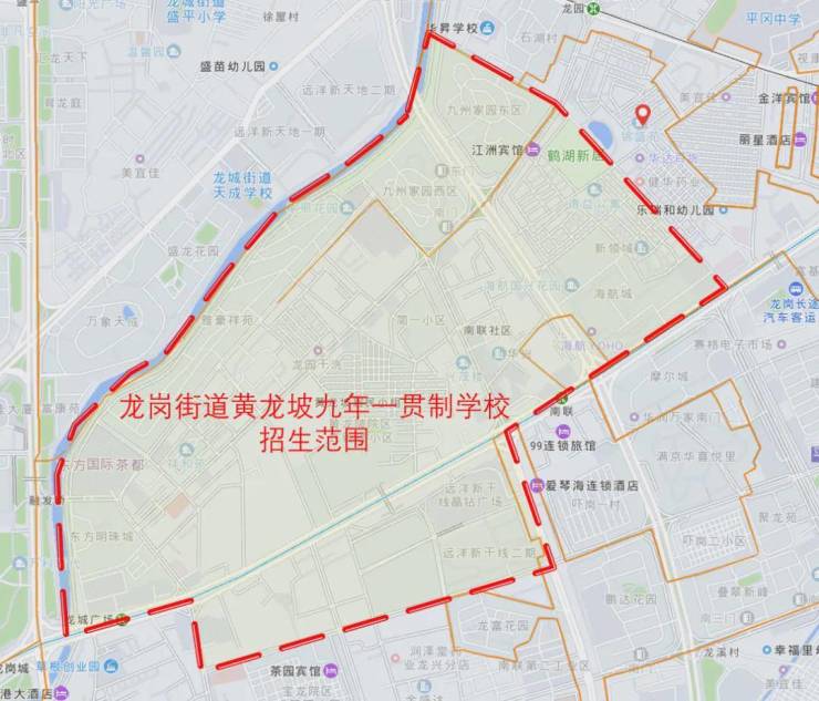范围1原属于龙华区第二实验学校学区,现调整为新华中学教育集团小学部学区;
