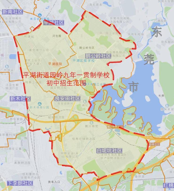 碧岭社区,汤坑社区,沙湖社区,六联社区金碧路以南、东纵路以西及锦龙大道以东片区,坪环社区比亚迪路以南、体育三路以西及大山陂水库管理线以北片区。