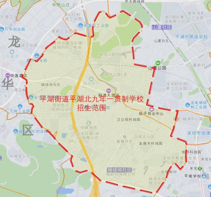 招生范围:将平湖第二实验学校和辅城坳小学的学区作为该校的招生范围,其小学招生范围、初中招生范围一致。目前,该校永久校区尚在建设中,2024年拟在平湖第二实验学校借址办学。