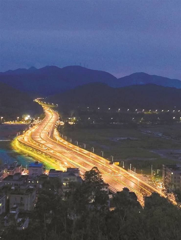 记者在嶂背郊野公园的福塔上看到,一条崭新的大路从龙岗中心城区原有的如意路向南延伸,穿过嶂背郊野公园所在的山体,向东南方向没入群山之中。目前,这条新道路包括高架桥和相应上下高架的匝道路面已铺装完好,桥下道路间隔区的绿化带和景观带也已设置完善,人行道上立有写着“龙城如意路”的路牌。
