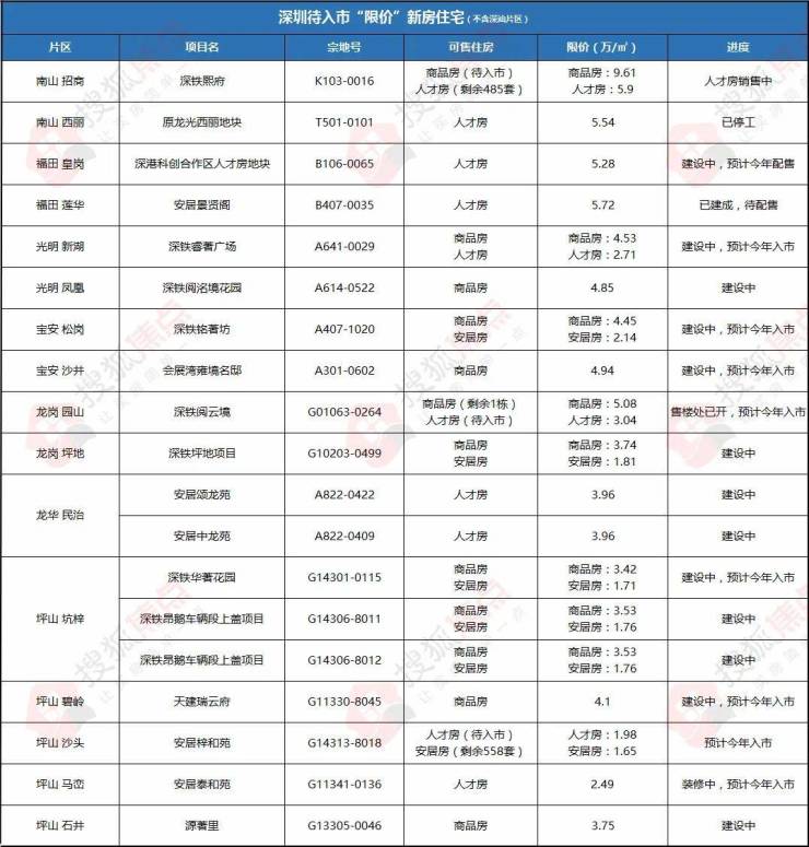 据@搜狐焦点深圳 统计,全市待售的“限价”宅地(含商品房、人才房、安居房)还有19宗,且坪山片区就占据了1/3,数量最多。