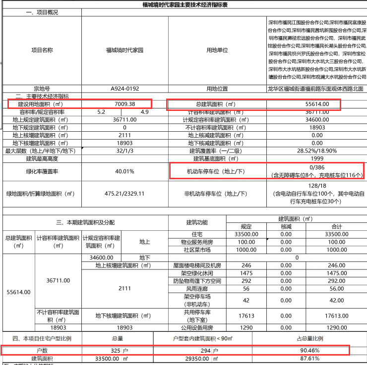 其中,01-04宗地备案为:福城境时代家园,位于福城街道福前路与福园西路交汇处东北侧,总用地面积7011.6㎡,总建筑面积48623㎡,计容面积34600㎡。规划325套住宅。