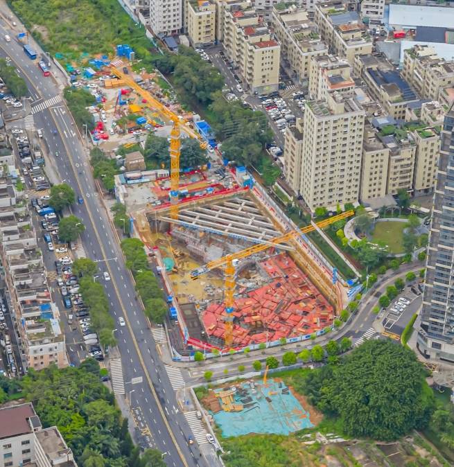 据航拍照片显示,福城境时代家园地下部分快要建好,福城境未来家园已经建出地面不少。