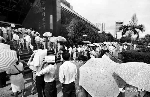 1994年8月4日,深圳图书馆门前等候办理借书证的人们。