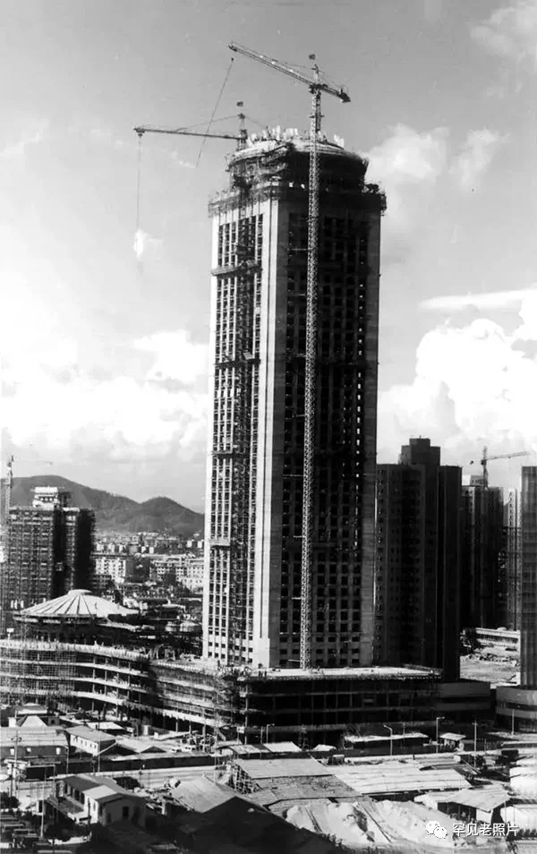 1982年,深圳深南大道,建设中的深圳排名前列高楼——电子大厦,一度成为深圳的地标。