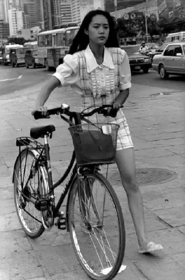 1993年,深圳,推自行车的姑娘。马克•吕布/摄。