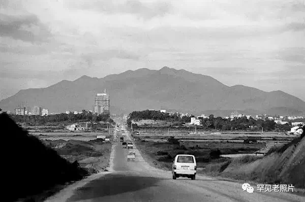 1983年,深圳,深南大道。背景是梧桐山,少有的高楼是电子大厦,后来围绕它形成了电子通讯聚集地华强北。何煌友/摄。