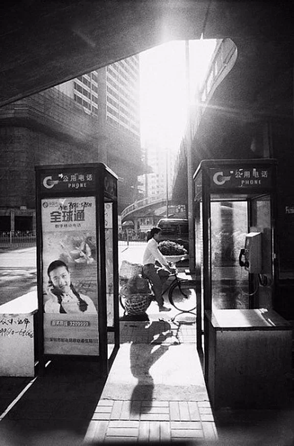 1991年,深圳老街,公用电话摊。朱宪民/摄。