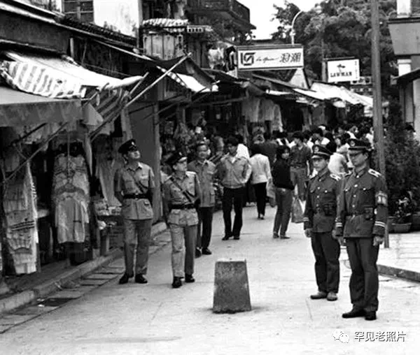 1985年,深圳,中英街上的香港警察和中国警察。何煌友/摄。