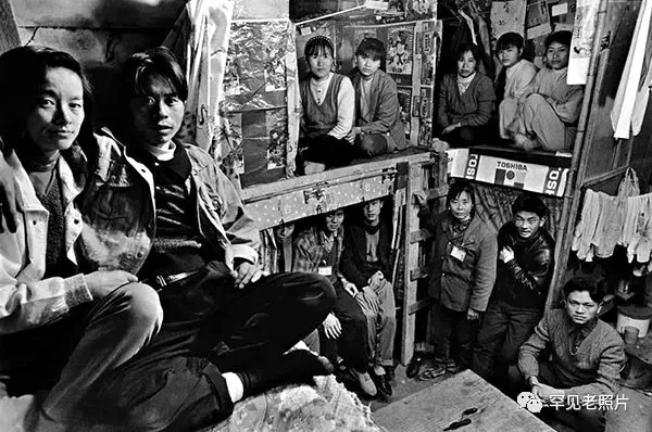 1997年,深圳沙井镇万丰村,一个10平方米的房间挤满了打工者。张新民/摄。
