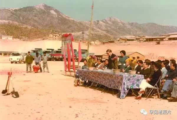1981年,深圳,蛇口排名前列家公司成立奠基仪式,远处的山是大南山。