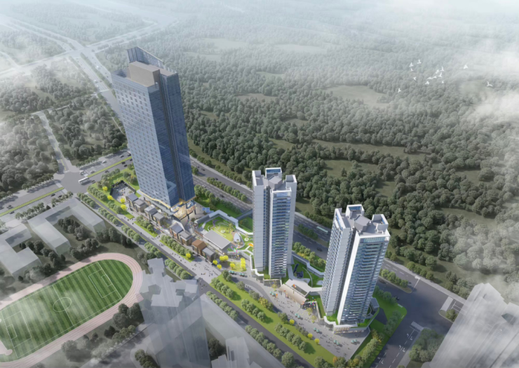 项目总占地面积约1.57万㎡,总建筑面积9.15万㎡,由4栋23-33层住宅组成,其中1栋A/B座商品房33层,1栋C座是酒店+办公,2栋A座商品房33层,2栋B座商品房23层,另外配建一所9班制幼儿园。