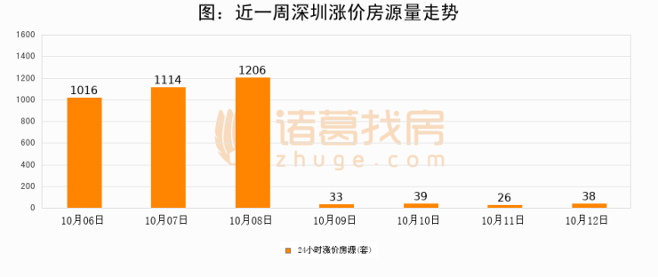 根据诸葛找房数据显示,深圳24小时涨价房源量为38套,较10月11日增加12套,环比上涨46.2%。与此同时,涨价房源占比小幅扩大,业主信心有所提升。