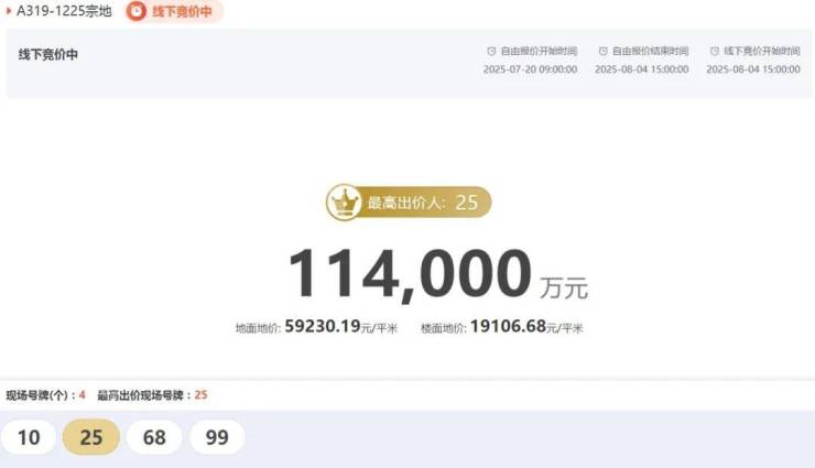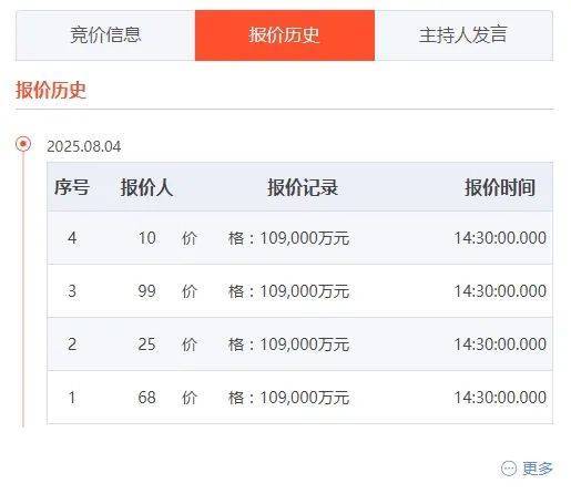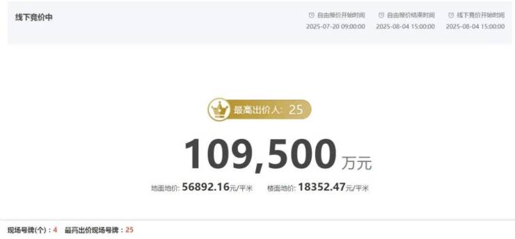 线下竞价开始,25号越秀率先举牌,加价500万,报价10.95亿。
