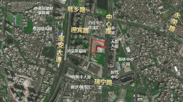A319-1225宗地,位于宝安区新桥街道中心路与瑞宁路交汇处西北侧,项目西侧是鸿荣源禧园小区,临近地铁11号线沙井站C、D出口,周边居住氛围较为浓厚。
