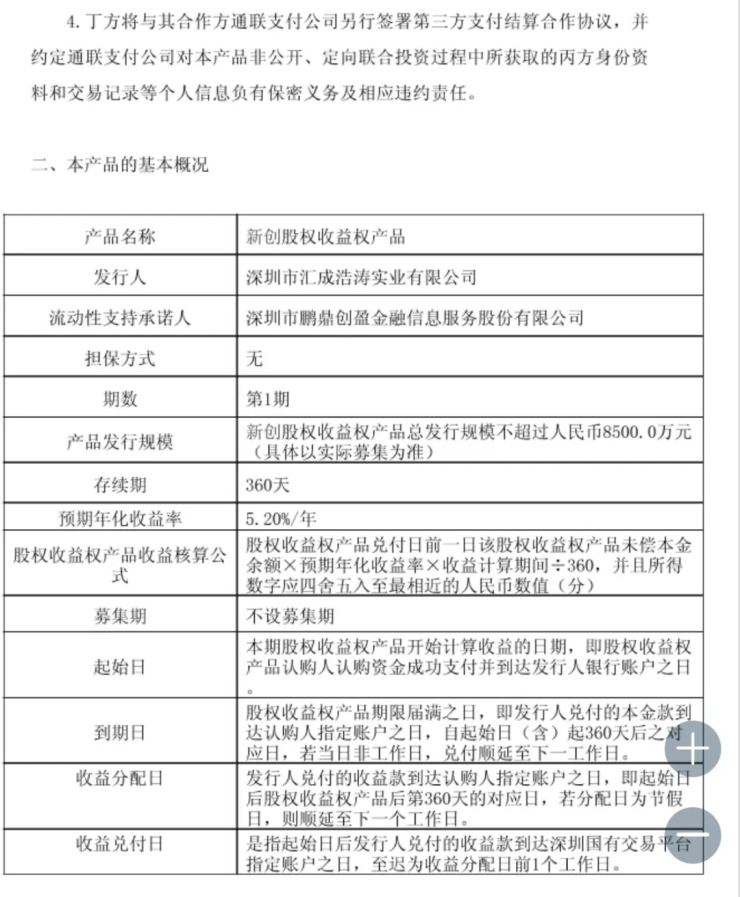 “还有两位投资人,一个是万科前员工,另一个人是前万科员工家属,我们三个人就投资了 500 多万元,产品名叫新创股权收益权和宏成股权收益权。据鹏金所介绍多的人买一千多万,大部分是万科员工。”上述万科员工说。