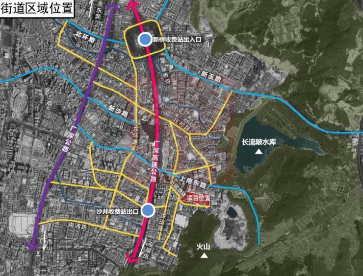 项目位于宝安区新桥街道黄埔社区洪田路与坑尾塘路交汇处的东南侧,更新单元用地面积67847.4㎡,拆除用地面积67847.4㎡,开发建设用地面积33208.4㎡。