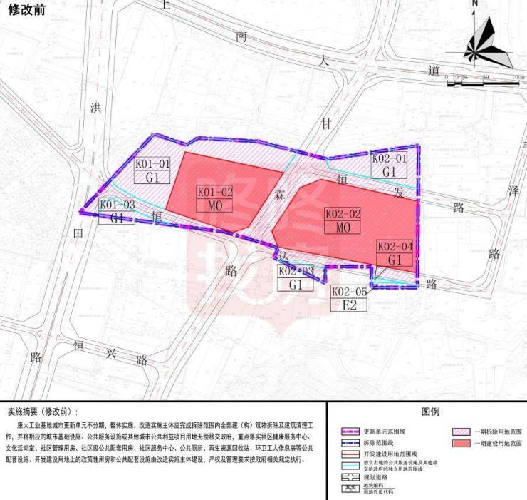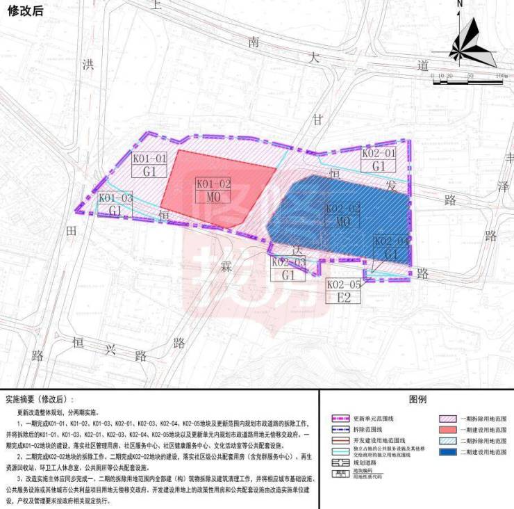 1、一期完成K01-01、K01-02、K01-03、K02-01、K02-03、K02-04、K02-05地块及更新范围内规划市政道路的拆除工作,并将拆除后的K01-01、K01-03、K02-01、K02-03、K02-04、K02-05地块以及更新单元内规划市政道路用地无偿移交政府。