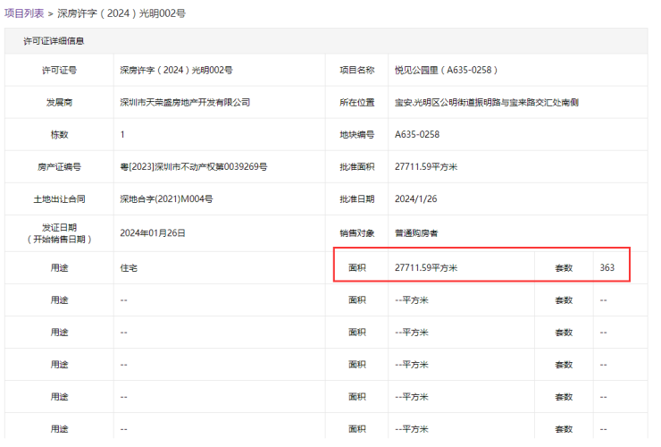 除了本批次安居房配售,近期位于光明的安居房也取得了预售证,共363套房源,相关配售公告及配套价格尚未公示,预计春节后会发布相关配售信息。