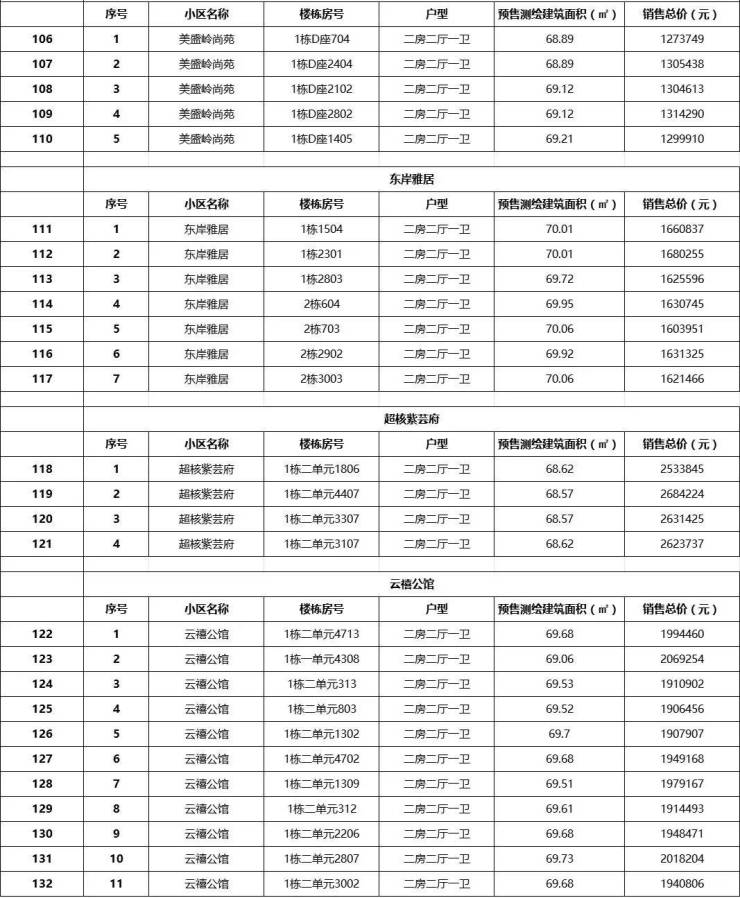 根据公告,本批次18个项目房源属于2021年至2023年供应的安居型商品房项目配售后,原认购家庭选定住房后退出的住房或是前期配售结束后未被选定的住房,共162套,其中两房132套,三房30套。两房的户型建面约70㎡,三房的户型建面约89㎡。