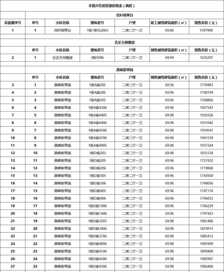 两房总价约127万起,两房房源具体价格如下。