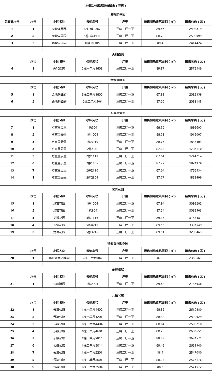 三房总价174万起,三房房源具体价格如下。