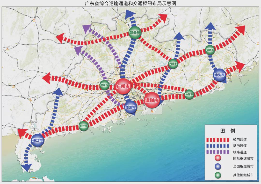 根据规划,广东省“十四五”将围绕构建新发展格局战略支点和“一核一带一区”区域发展格局,推进综合交通枢纽和综合运输通道建设,加快形成以粤港澳大湾区为中心,汕头、湛江、韶关为极点,轴带支撑、多向联通的综合交通布局。