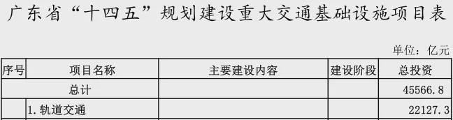 根据规划,广东省“十四五”期间轨道交通项目建设情况如下:
