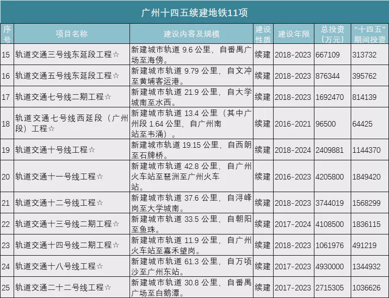 一、广州:23项地铁项目、2项有轨电车项目