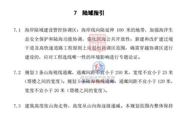 海岸陆域功建设管的协调区,规划3条山海视线通廊,规划5条陆海视线通廊,构建便利的滨海慢步系统。