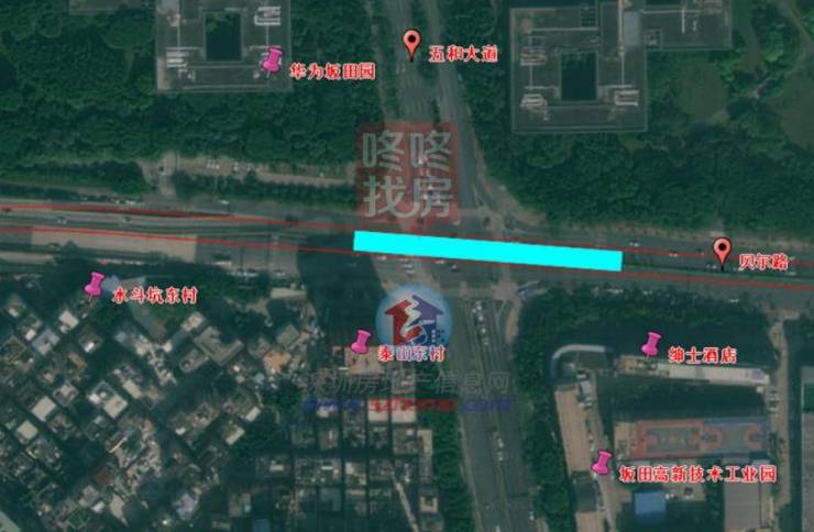 位于龙岗区五和大道与贝尔路交叉口,沿贝尔路东西向布置。