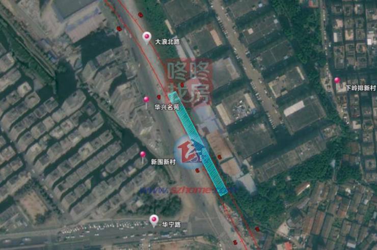 龙华区大浪北路与华宁路交叉口北侧,沿大浪北路南北向布置。