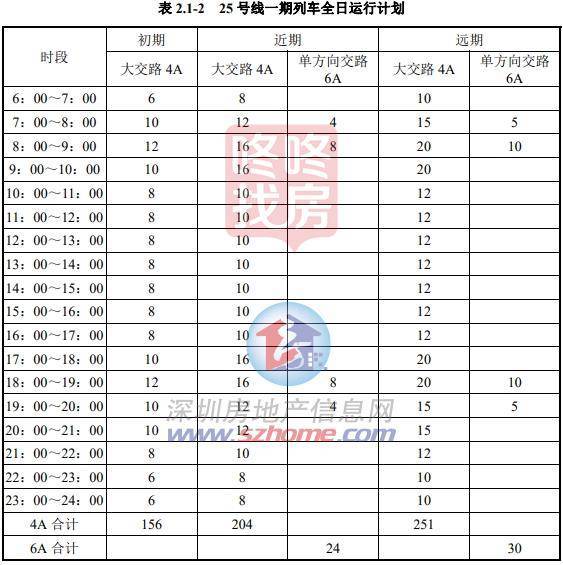 25号线一期工程每天早晨6:00开始投入运营,晚上24:00结束运营,全天共计运营18小时,全日行车计划见下表。