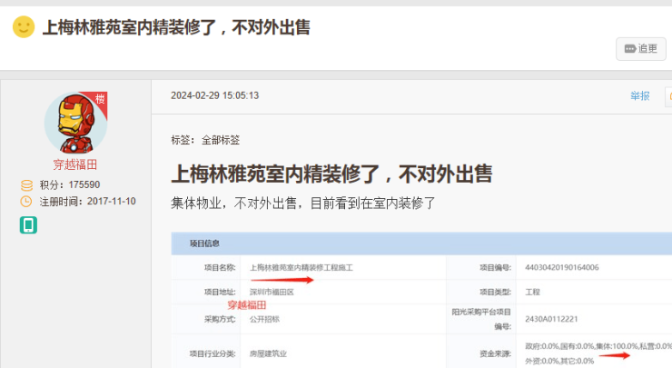 不过,有网友爆料,上梅林雅苑是100%集体物业,年初已经在做室内精装修了,不对外出售,消息还有待进一步核实。