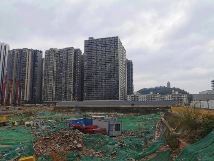 今年4月份,我们现场实探发现,项目正在坑基、车库建设阶段,进度与去年相差不大。