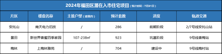 以上3盘中,进度最快的是上梅林雅苑,已经封顶。而新世界香蜜四季花园、南天电力项目,还处于前期施工中,最快或明年可入市。