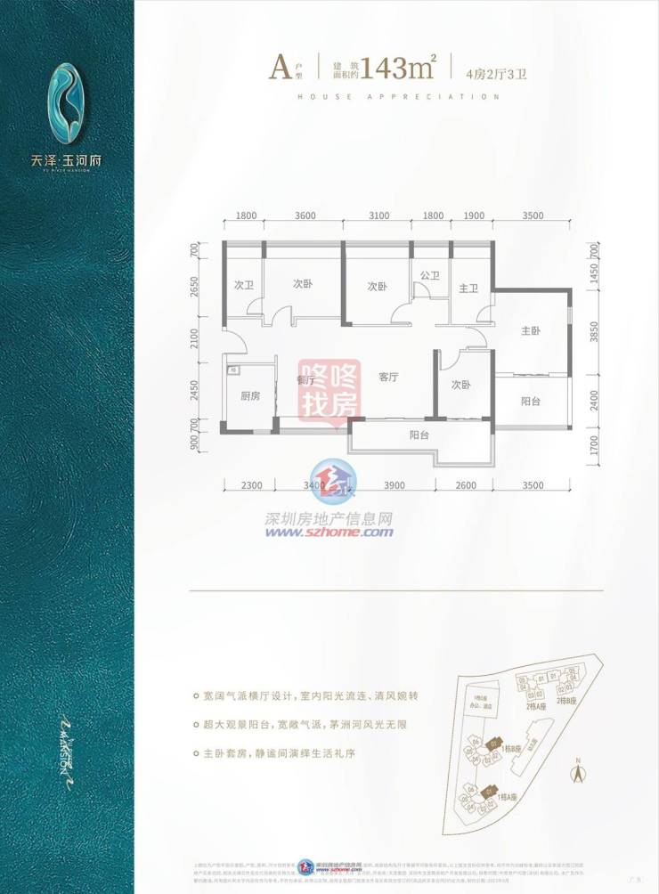 项目临茅洲河岸而建,户型主打80-143平的2-4房单位,据了解,户型的使用率达80%(具体以实际使用率为准,本文仅作参考)。