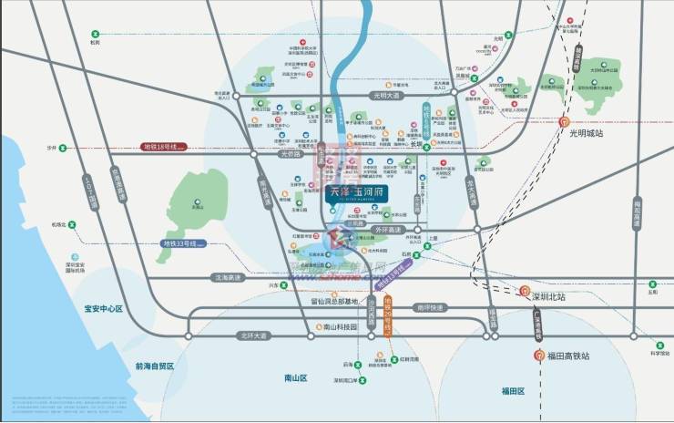 天泽·玉河府位于玉塘板块,具体位置为西邻城市主干道松白路,东临茅洲河(长圳段)、北临长圳路。可便捷接驳光侨路、深圳外环高速、南光高速、龙大高速等,实现市域板块高效转换。