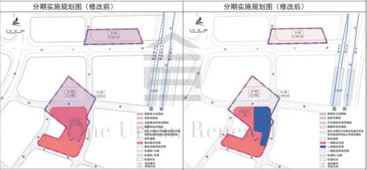 将原规划的01-01地块,用地性质为商业用地+二类居住用地,规划调整为01-01和01-02地块,更新单元总开发建设用地面积保持不变。其中,一期实施01-01地块,用地性质为二类居住用地,用地面积11299.2㎡,二期实施01-02地块,用地性质为商业用地,用地面积5876.2㎡。