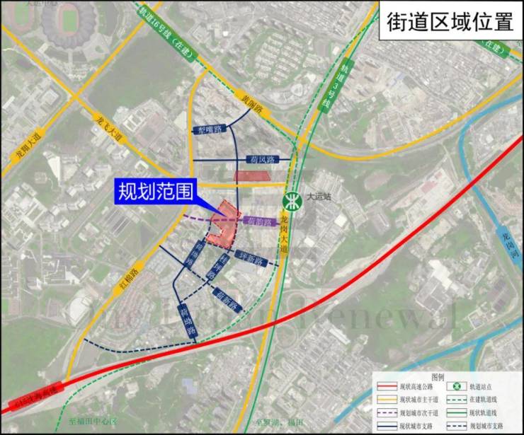金昇厂城市更新单元位于龙岗区园山街道荷坳社区,大运枢纽站点500米范围内,北临荷风路,南临规划坪新路,西临规划荷坳路,东临规划桂坪路。